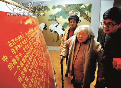 “這是特意為您準備的生日禮物!”年過六旬的盧永瀚攙扶著92歲的母親,在根雕、油畫面前仔細講解!斑@個根雕是壽字!”孫女插話說:“就是祝您長壽,活過100歲!”慧老太太邊看邊比劃著,樂得合不攏嘴,用濃重的江浙口音說:“好、好!”