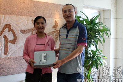四時(shí)整,楚天都市報(bào)副總編輯費(fèi)力和荊楚網(wǎng)副總編輯張劍分別為兩位中獎(jiǎng)?wù)哳C發(fā)了獎(jiǎng)品,并希望他們繼續(xù)關(guān)注這次活動,能再次成為最后大獎(jiǎng)的幸運(yùn)讀者。