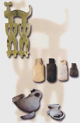 陶罐及殘口沿:盛器(下,最大者高14厘米)[相關(guān)鏈接]:20世紀(jì)中國百項(xiàng)考古大發(fā)現(xiàn)(1-20)21、大溪遺址(圖)22、城頭山遺址(圖)23、屈家?guī)X遺址(圖)24、崧澤遺址(圖)25、馬家窯遺址(圖)26、柳灣墓地(圖)27、牛河梁遺址(圖)28、城子崖遺址(圖)29、良渚文化遺址群(圖)30、石家河遺址群(圖)31、陶寺遺址(圖) 32、王城崗遺址(圖)33、齊家坪遺址(圖)34、卡若遺址(圖)35、石峽遺址(圖) 36、東灣仔北遺址(圖)37、圓山遺址(圖)38、二里頭遺址(圖)39、東下馮遺址(圖)40、夏家店遺址(圖)