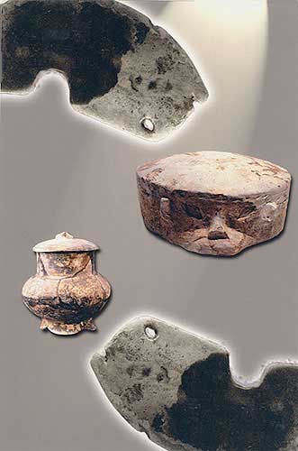 魚鳥形玉璜:裝飾品(上、下,長(zhǎng)6.6厘米)[相關(guān)鏈接]:20世紀(jì)中國百項(xiàng)考古大發(fā)現(xiàn)(1-20)21、大溪遺址(圖)22、城頭山遺址(圖)23、屈家?guī)X遺址(圖)24、崧澤遺址(圖)25、馬家窯遺址(圖)26、柳灣墓地(圖)27、牛河梁遺址(圖)28、城子崖遺址(圖)29、良渚文化遺址群(圖)30、石家河遺址群(圖)31、陶寺遺址(圖) 32、王城崗遺址(圖)33、齊家坪遺址(圖)34、卡若遺址(圖)35、石峽遺址(圖) 36、東灣仔北遺址(圖)37、圓山遺址(圖)38、二里頭遺址(圖)39、東下馮遺址(圖)40、夏家店遺址(圖)
