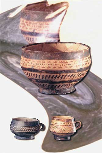 彩陶碗:食器(上中,高6.6厘米)