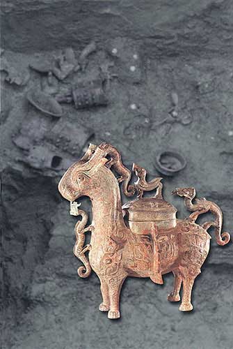 青銅犧尊;酒器(高12.07厘米,寬40.5厘米)[相關(guān)鏈接]:20世紀(jì)中國百項(xiàng)考古大發(fā)現(xiàn)(1-20)20世紀(jì)中國百項(xiàng)考古大發(fā)現(xiàn)(21-40)41、大甸子遺址和墓地(圖)42、偃師商城(圖)43、鄭州商城遺址(圖)44、盤龍城遺址(圖)45、安陽殷墟遺址(圖)46、吳城遺址(圖)47、新干大墓(圖)48、三星堆祭祀器物坑(圖)49、周原遺址(圖)50、豐鎬遺址與墓地(圖)51、琉璃河遺址(圖)52、晉侯墓地(圖)53、三門峽虢國墓地與上陽城遺址(圖)54、晉國故城遺址(圖) 55、鄭韓故城(圖)56、燕下都遺址(圖)57、曾侯乙墓(圖)58、紀(jì)南城周圍的墓葬群(圖)59、中山王陵(圖)60、銅綠山礦冶遺址(圖)