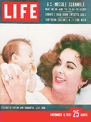 1957年,伊麗莎白·泰勒抱著和第三任丈夫、制片家邁克·托德所生的女兒麗莎·托德。這一年,她才25歲,已經(jīng)結(jié)過(guò)兩次婚。泰勒在結(jié)束第二段婚姻的兩天后就決定嫁給托德,可在1958年,托德死于飛機(jī)失事。