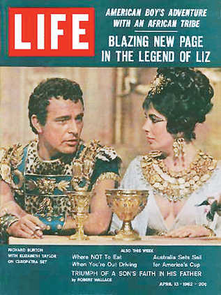 1961年,泰勒入主《埃及艷后》,20世紀(jì)?怂归_(kāi)給她的報(bào)酬是當(dāng)時(shí)破紀(jì)錄的100萬(wàn)美元。而她的羅曼史翻開(kāi)了新的一頁(yè)——與扮演羅馬大將安東尼的理查德·伯頓陷入熱戀。