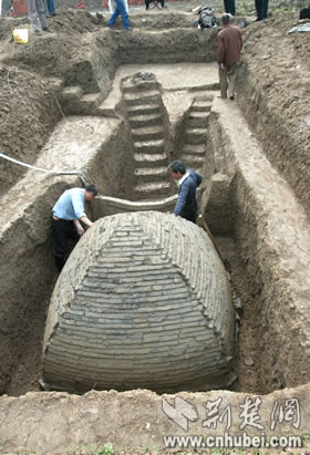 荊楚網(wǎng)消息(楚天都市報(bào))(記者沈秋 通訊員王道文 楊力)昨日,襄樊市考古隊(duì)在高新區(qū)一工地發(fā)現(xiàn)一處宋代墓群,其中一座仿木式穹隆頂雙墓道宋代古墓保存完整,為該市少見(jiàn)。