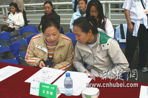 在和王軍霞的交談中得知這是她第二次來武漢,她說她對武漢的印象不錯,特別是群眾性的健身活動。這次在現(xiàn)場看到有這么多的市民自愿來參加健康跑,她覺得很高興和欣慰,因?yàn)樗F(xiàn)在的身份就是健康跑的推廣大使,希望有更多的人參與在這項(xiàng)方便易行的活動中去,增加體質(zhì),為國為民為自己。當(dāng)我告訴她是因?yàn)樗牡絹聿盼诉@么多的人來參加活動時,她覺得很驚喜!叭绻@樣能吸引更多的人,我想我的付出是值得的!”