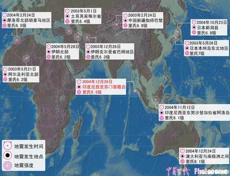 26日,印度尼西亞蘇門答臘島以北海域發(fā)生里氏8.5級(jí)強(qiáng)烈地震,并引發(fā)海嘯,波及東南亞和南亞數(shù)個(gè)國(guó)家,造成重大人員傷亡。