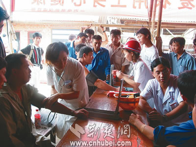 15日,參加武鋼工程建設(shè)的百余位農(nóng)民工兄弟,樂呵呵地接受了中國一冶電裝公司武鋼項目部為他們免費(fèi)進(jìn)行的體檢。浠水工程隊民工朱宗杰說:“這兩年來,社會各界對農(nóng)民工的關(guān)心很實在!