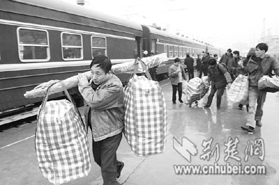停靠10分鐘后,這趟民工專列駛離武昌站,于昨晚20時(shí)20分到達(dá)襄樊。據(jù)武昌站介紹,節(jié)前的民工專列多從南方發(fā)往武漢,節(jié)后武漢鐵路局將加開大量南下、東進(jìn)的民工專列。