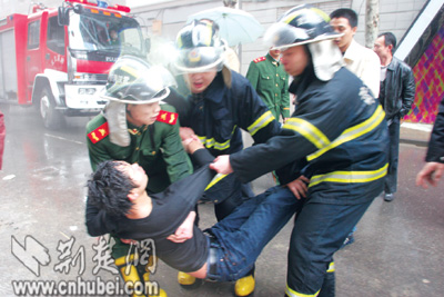 昨日上午,漢口青島路10號的鉆石酒吧在裝修中不慎引發(fā)火災,兩男子被困。危急關頭,消防兵破門而入,將二人救出。