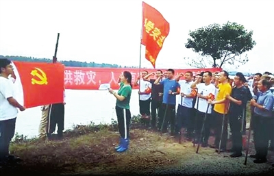 黨旗飄揚(yáng)在大堤
