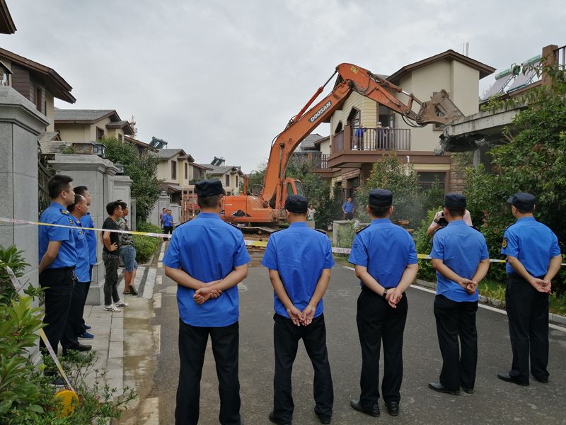 據(jù)介紹,本次拆除的2處違章建筑均為亂搭建,是業(yè)主在未取得相關(guān)手續(xù)的情況下,擅自改變房屋結(jié)構(gòu)搭建而成,2處違章建筑存在極大的安全隱患。咸安區(qū)城市管理執(zhí)法局在今年多次上門下達(dá)整改通知書,但當(dāng)事人仍抱僥幸心理,拒不整改。“他們逾期仍未履行拆除義務(wù),所以我們依法對(duì)其進(jìn)行了強(qiáng)制拆除?!毕贪矃^(qū)城市管理執(zhí)法局相關(guān)負(fù)責(zé)人介紹,他們當(dāng)天出動(dòng)了100余名執(zhí)法人員,完成了兩處違章建筑的拆除工作。