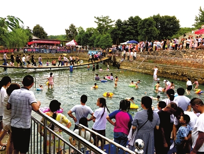 每到“五一”高峰時(shí),游客蜂擁而來(lái),車子從村口堵到了集鎮(zhèn),我們光賣雪糕、礦泉水都忙不過(guò)來(lái)。