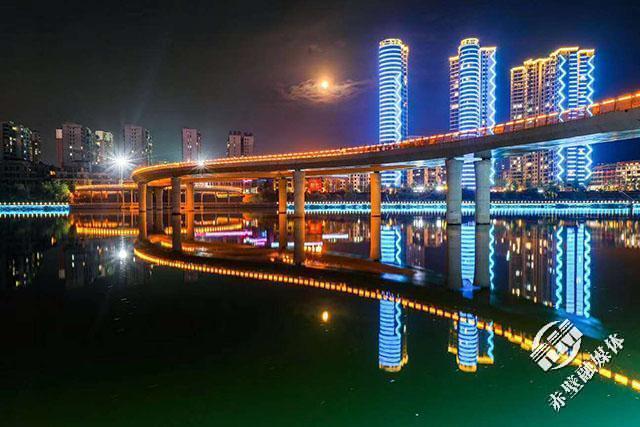 傍晚,燈火點(diǎn)亮了赤壁的夜經(jīng)濟(jì)