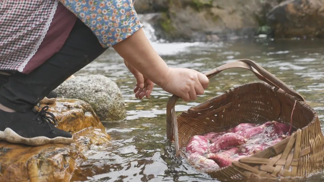 挖回來的紅薯淘洗干凈,