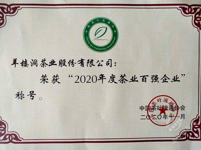 11月18日,第十六屆中國(guó)茶業(yè)經(jīng)濟(jì)年會(huì)正式發(fā)布了2020中國(guó)茶葉行業(yè)調(diào)查的最終結(jié)果,對(duì)年度中國(guó)茶業(yè)優(yōu)秀企業(yè)、優(yōu)秀縣域進(jìn)行授牌表彰。赤壁市榮獲“十三五百?gòu)?qiáng)縣市十強(qiáng)”和“2020年度茶業(yè)百?gòu)?qiáng)縣”稱(chēng)號(hào),其中“十三五百?gòu)?qiáng)縣市十強(qiáng)”中赤壁市是湖北省唯一入選的縣市,在“2020年度茶業(yè)百?gòu)?qiáng)企業(yè)”評(píng)選中,羊樓洞茶業(yè)股份有限公司成為咸寧市唯一入選的企業(yè)。