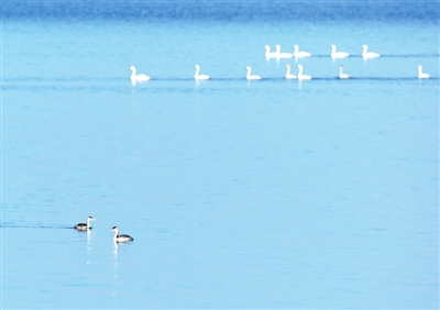 近年來,隨著退垸還湖和禁捕政策的實施,濕地生態(tài)環(huán)境持續(xù)改善,西涼湖水質(zhì)上升為二類后,為天鵝越冬創(chuàng)造了良好的棲息之地。