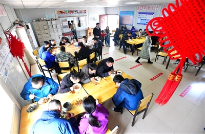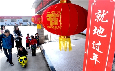 “項(xiàng)目部很貼心,給外地來(lái)的家屬準(zhǔn)備了很多過(guò)年物資,還給孩子們準(zhǔn)備了玩具?!痹诼毠に奚針窍?,龔飛正帶著孩子們玩耍,她說(shuō),這里掛燈籠、貼春聯(lián)、糊窗花,在這里過(guò)年感受到了家一般的溫暖,年味濃濃。