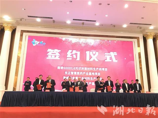 本次集中簽約項目中,咸寧南玻玻璃有限公司擬投資50億元,其中一期投資10億元,新建設(shè)光伏封裝材料生產(chǎn)線;隆華科技集團(tuán)旗下的咸寧海威復(fù)合材料制品有限公司是新型高分子復(fù)合材料領(lǐng)域的隱形冠軍,本次計劃投資10億元;武漢盛勢魔方科技有限責(zé)任公司擁有自主研發(fā)的核心技術(shù),投資1億元建智能傳感器研發(fā)及生產(chǎn)基地;武漢和信光通信科技有限公司投資2億元,建設(shè)光通訊及磁性器件生產(chǎn)基地等。