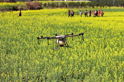 3月4日,在咸安區(qū)馬橋鎮(zhèn)建國畈油菜花海,一臺無人機盤旋在油菜花田上方,為油菜噴施環(huán)保復(fù)合肥。據(jù)咸安區(qū)農(nóng)業(yè)農(nóng)村局介紹,這是通過無人機來給油菜送“套餐”,無人機攜帶著精心調(diào)配的藥肥,能夠快速的對油菜大面積噴灑覆蓋,作業(yè)效率和效果顯著優(yōu)于人工噴施。