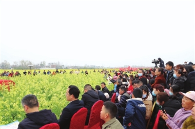 精彩的文藝演出、極具地方風(fēng)情的民俗表演和國(guó)家非物質(zhì)文化遺產(chǎn)提琴戲演唱,與花海交相輝映,為前來(lái)觀賞的人們帶來(lái)了絕美的視覺(jué)盛宴。開(kāi)幕活動(dòng)結(jié)束后,開(kāi)始游玩賞景,游客們或全家出動(dòng),或情侶相攜,或友人相伴,邊感嘆油菜花的美,邊呼朋引伴一起拍照留念,人花相映襯,美不勝收。除了賞花,大家還紛紛品嘗特色美食,購(gòu)買(mǎi)當(dāng)?shù)靥厣r(nóng)產(chǎn)品。