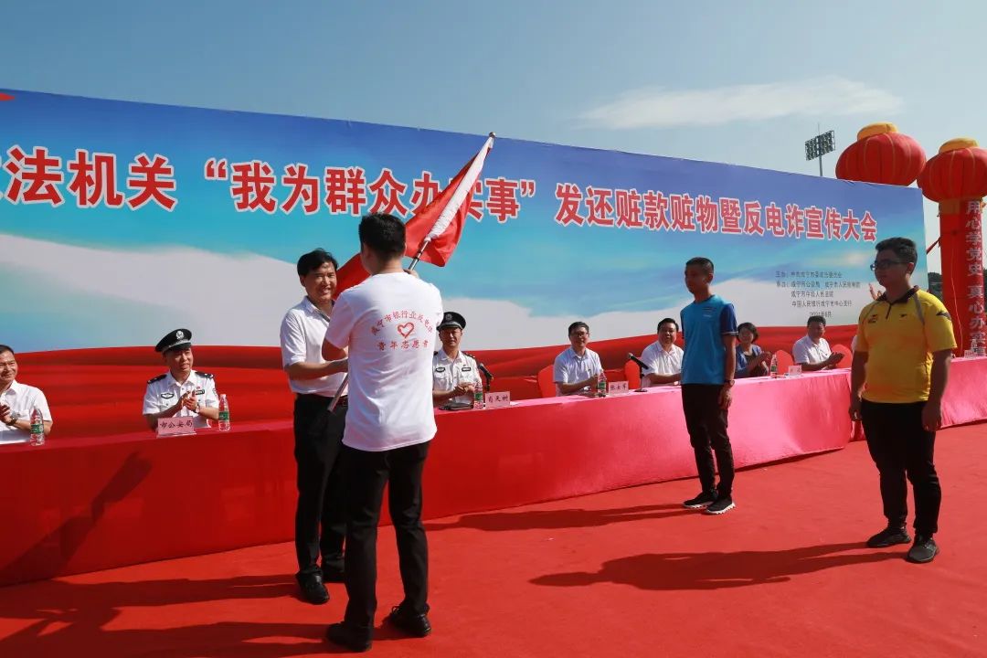 6月24日上午,全市政法機關(guān)隆重舉行“我為群眾辦實事”發(fā)還贓款贓物暨反電詐宣傳大會,集中返還在偵察破案中追繳的部分贓款,以及汽車、筆記本電腦、手機、煙酒、郵票等被盜、被騙贓物,總計價值5038.6萬元,彰顯了公安機關(guān)的打擊戰(zhàn)果,震懾違法犯罪,進一步提升人民群眾安全感和滿意度。