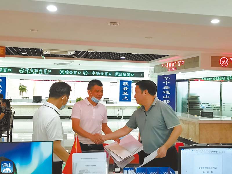 “1個地塊5個證,一共25個證,沒想到一天就能拿到手!”9月30日下午,在通山縣政務(wù)服務(wù)中心工程建設(shè)項目綜合審批窗口,通山縣興達鞋業(yè)有限公司經(jīng)理程宏兵從縣住建局局長手中接過厚厚的一摞證,意味著通山縣興達鞋業(yè)有限公司在通山的地塊達到開工條件。