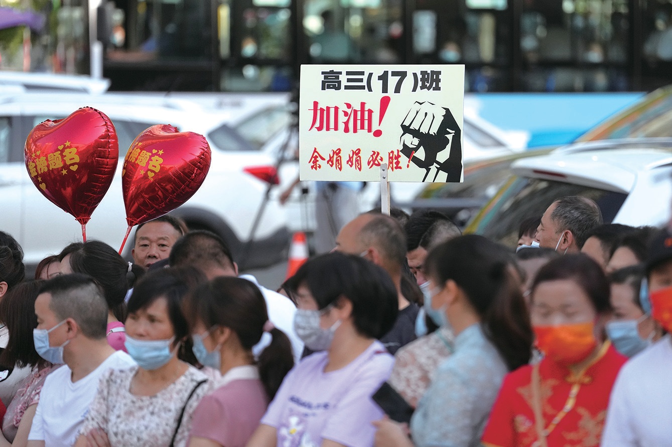“金榜題名”的紅氣球、“必勝”的標(biāo)語牌、寓意“旗開得勝”的旗袍,送考的家長們把濃濃的愛、殷切的期望化做各種加油鼓勁。高考,不僅是考生一個(gè)人的事,更是全家人共同的目標(biāo)。