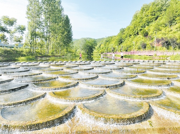日前,游客在房縣馬尾河化龍堰鎮(zhèn)上灣村段人工蓮花瀑布前的磨盤壩上游玩。近年來,房縣全域?qū)嵤┖恿魉鷳B(tài)修復(fù),提升轄區(qū)314條河流水質(zhì),沿河建設(shè)濕地公園、水體景觀等,吸引游客前來觀光,實現(xiàn)“水景觀、水生態(tài)、水經(jīng)濟”有機融合。