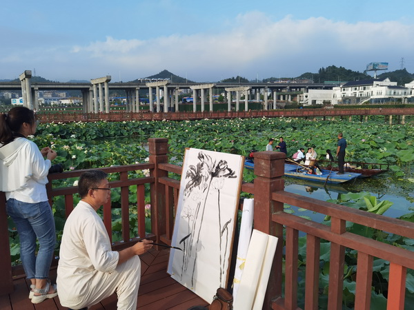 (武當融媒記者 徐剛 柴建 周瓊 劉程程)一條江,漢文化起源;一個湖,無極生太極;一座千年武當,億萬武俠夢的江湖;老子布道、莊子逍遙......7月23日18:00,武當雅集首季第四集《逍遙?泛舟江湖》在武當山太極湖精彩上演。大暑時節(jié),來自武當山的文人雅士們泛舟太極湖,看老子像、眺天柱峰、尋水下城,感受大山大水大人文的獨特魅力;習養(yǎng)生功、飲荷花茶、喝蓮子粥,體驗武當神奇的養(yǎng)生之道。