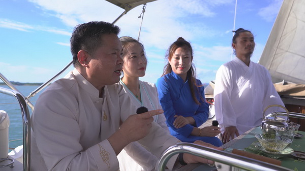 “采仙山之靈氣,納碧水之潤澤”。在碧波蕩漾的太極湖上,武當文化學者與愛好者圍繞煙波浩淼的丹江口水庫、舉世矚目的南水北調中線工程、72峰朝大頂?shù)莫毺仄嬗^、沉睡于漢水之下的均州古城、國學經典《道德經》,看老子像、眺天柱峰、尋水下城,品茶論道、談古論今,呈現(xiàn)出“泛舟江湖”的唯美意境。