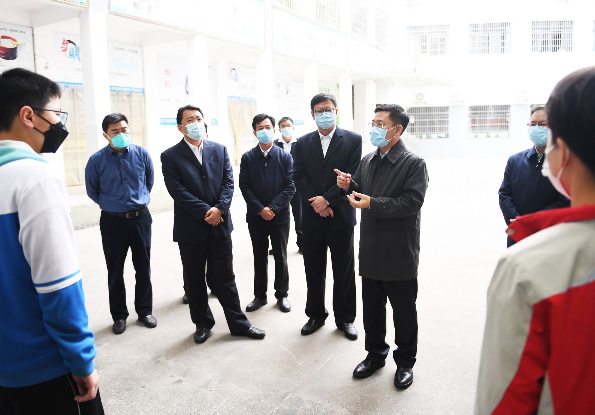因前期篩查發(fā)現(xiàn)有陽性病例活動(dòng)軌跡,崇陽縣眾望高中實(shí)行靜默管理,部分師生在校園內(nèi)接受健康監(jiān)測,他們的身體情況、生活保障和心理狀況牽掛著市領(lǐng)導(dǎo)的心。孟祥偉、楊軍來到學(xué)生宿舍樓下,在采取戴口罩、間隔一米等必要防護(hù)措施后,和被監(jiān)測學(xué)生、老師親切交流,詳細(xì)了解監(jiān)測措施落實(shí)、日常飲食及營養(yǎng)保障、心理疏導(dǎo)等情況。
