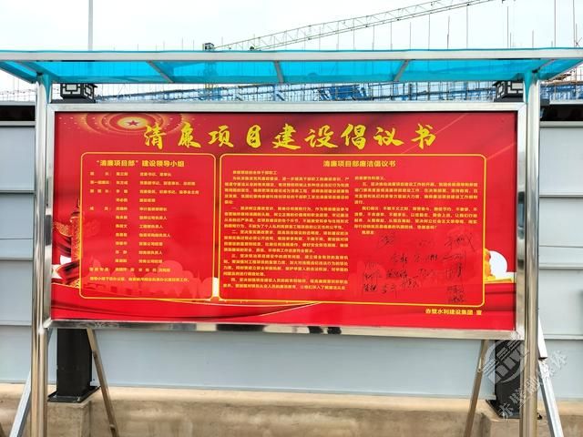 赤壁中試谷·智能無(wú)人系統(tǒng)測(cè)試基地赤壁市水建集團(tuán)項(xiàng)目部前的清廉項(xiàng)目建設(shè)倡議書(shū)的簽名板上,密密麻麻地簽滿(mǎn)了名字。一個(gè)簽名就是一份承諾,一個(gè)簽名就是一份責(zé)任,一個(gè)簽名就是水建集團(tuán)建設(shè)清廉國(guó)企的堅(jiān)實(shí)基礎(chǔ)。