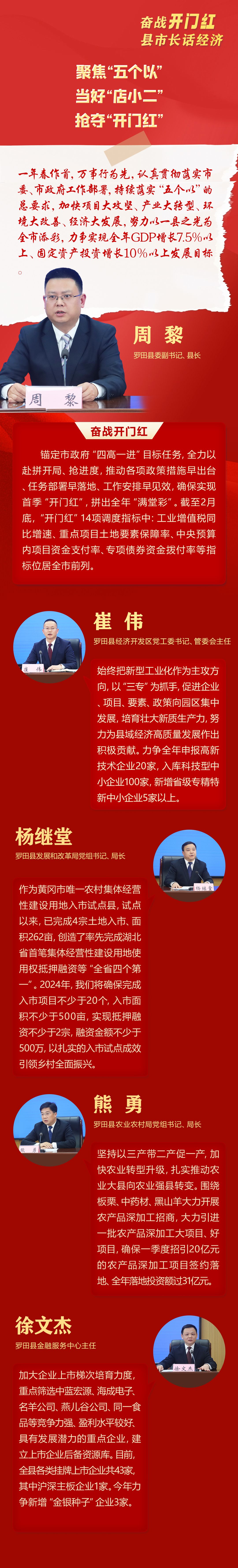 3月14日,黃岡召開(kāi)“奮戰(zhàn)開(kāi)門紅 縣市長(zhǎng)話經(jīng)濟(jì)”系列新聞發(fā)布會(huì),羅田縣就聚焦“五個(gè)以”,當(dāng)好“店小二”,搶奪“開(kāi)門紅”相關(guān)情況回答社會(huì)關(guān)切。