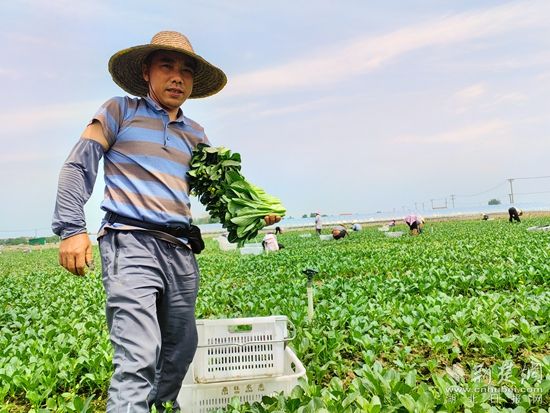 廣東菜心的生長(zhǎng)周期在28天,時(shí)間一過(guò)就會(huì)影響口感。為了能及時(shí)收割,保證菜心的脆嫩度,石成旺十分需要這支專業(yè)的收割團(tuán)隊(duì)。