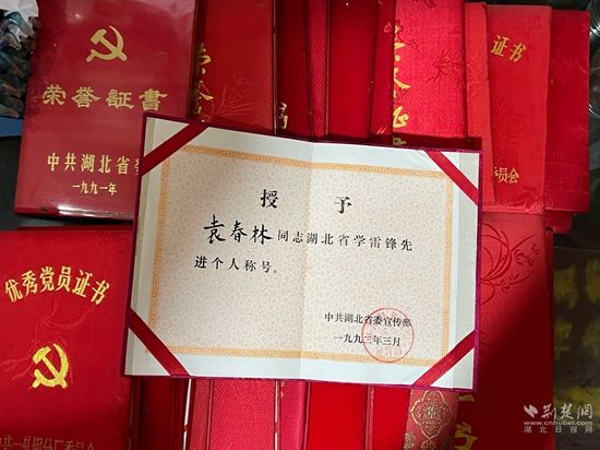 袁春林部分獎(jiǎng)狀證書。阮瓊 攝