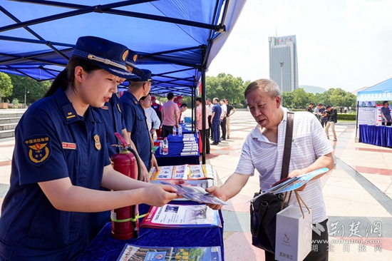 同時,黃石市消防救援支隊支隊依托活動,精心準(zhǔn)備以防火、滅火、逃生為主要內(nèi)容的宣傳單、宣傳手冊、掛圖等宣傳資料以及咨詢臺,發(fā)放《居家防火指南》《燃?xì)獍踩崾尽贰陡黝悎鏊由R》、消防宣傳畫報等800余份宣傳資料,提醒廣大人民群眾要提高消防安全意識和自防自救能力,確保自身安全。