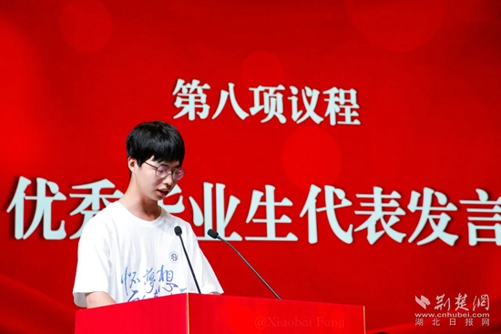 畢業(yè)典禮上,該校表彰了20名2024屆優(yōu)秀畢業(yè)生,以及14名2023年國家獎學(xué)金、勵志獎學(xué)金獲得者。典禮開始前,湖北工程職業(yè)學(xué)院8個二級學(xué)院輔導(dǎo)員代表還接力合唱了一曲《小美滿》,深情與畢業(yè)生們道別,“很高興參與你們的青春故事”。