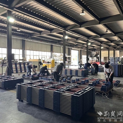 工人在打包光伏包裝托盤(pán)。通訊員 供圖