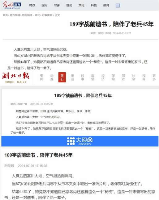 連日來(lái),《189字戰(zhàn)前遺書,陪伴了老兵45年》的故事也在不斷升溫,獲得省內(nèi)外多家媒體密集關(guān)注。
