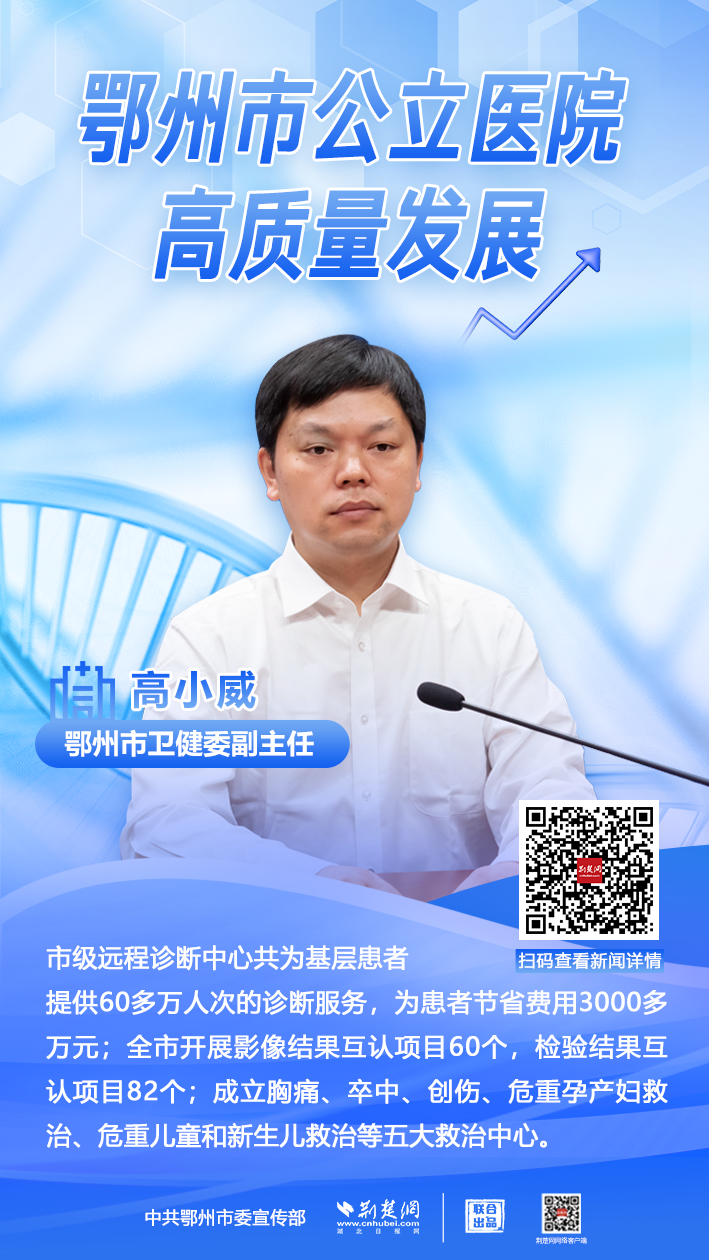 荊楚網(wǎng)(湖北日報網(wǎng))訊(記者 王焱堯 姜夢瑤)8月8日,鄂州市舉辦公立醫(yī)院高質(zhì)量發(fā)展新聞發(fā)布會,通報近年來該市在“推進衛(wèi)生健康事業(yè)高質(zhì)量發(fā)展”中,公立醫(yī)院發(fā)展取得的系列成績。