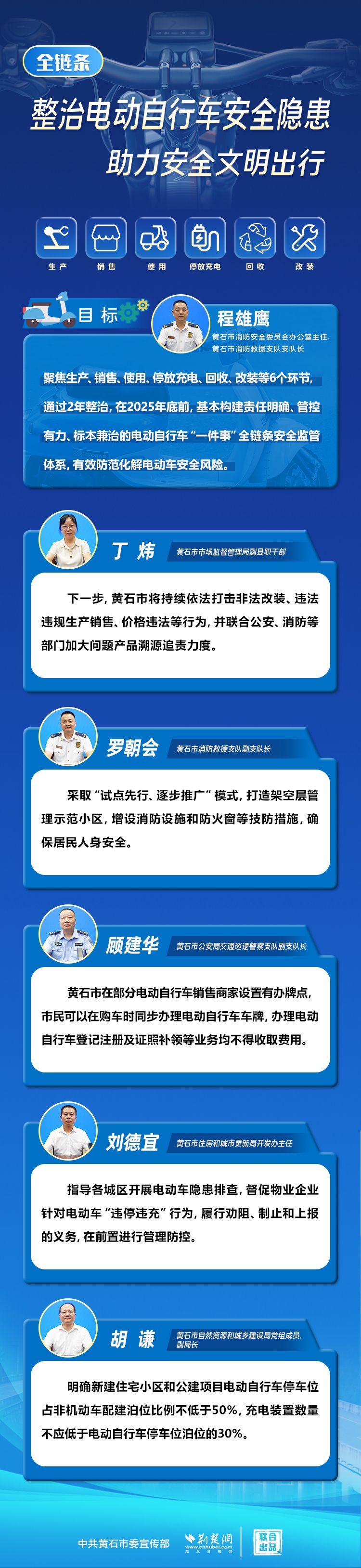 荊楚網(wǎng)(湖北日?qǐng)?bào)網(wǎng))訊(記者 劉璐 通訊員 李玉)8月15日,黃石召開新聞發(fā)布會(huì),通報(bào)全市電動(dòng)自行車安全隱患全鏈條整治行動(dòng)總體情況。會(huì)上提出,在2025年底前,基本構(gòu)建責(zé)任明確、管控有力、標(biāo)本兼治的電動(dòng)自行車“一件事”全鏈條安全監(jiān)管體系。