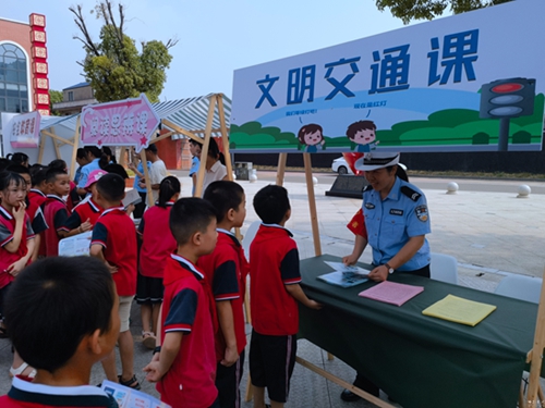 現(xiàn)場,每個攤位前都圍滿了前來“趕集”的紅色身影,熱鬧非凡。防詐反詐攤位上,該鎮(zhèn)派出所民警為學(xué)生們宣講反詐知識,增強(qiáng)學(xué)生們的識騙防騙意識和能力;一旁的平安法治攤位,鎮(zhèn)司法所工作人員結(jié)合典型案例,向同學(xué)們解讀《中華人民共和國未成年人保護(hù)法》相關(guān)法律條款,并圍繞校園暴力的危害性和預(yù)防措施進(jìn)行講解……