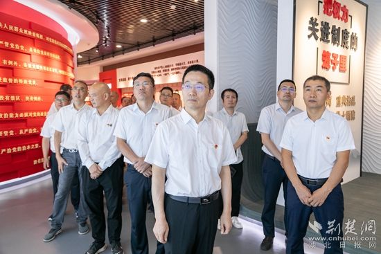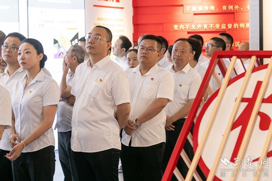 在教育基地,全體黨員領(lǐng)導(dǎo)干部依次參觀了“紅旗漫卷 初心如磐”“紀(jì)法如山 警鐘長鳴”“清廉黃石 續(xù)寫華章”三大主題展廳,重點(diǎn)了解了中國廉政文化的發(fā)展脈絡(luò)、黃石市反腐倡廉建設(shè)歷程及本市近年來查處的違紀(jì)違法典型案例。