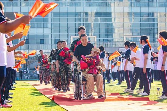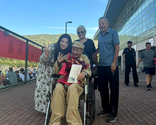 荊楚網(wǎng)(湖北日?qǐng)?bào)網(wǎng))訊(記者呂鑒蕾、通訊員黃旺宣、范晨熠、李俊)9月29日,湖北師范大學(xué)附屬中學(xué)(黃石一中)操場(chǎng),當(dāng)98歲的老兵由家人推著輪椅,緩緩走上紅地毯時(shí),現(xiàn)場(chǎng)爆發(fā)出雷鳴般的掌聲。