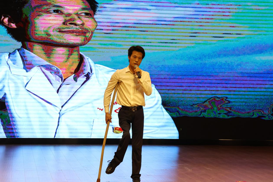 杜詠梅的《牽手》,講述了一位教師與一名自閉癥兒童的故事?!拔釃f疆以仁愛,千年不滅的信仰......”現(xiàn)場觀眾應(yīng)節(jié)合拍,氣氛達(dá)到了高潮。
