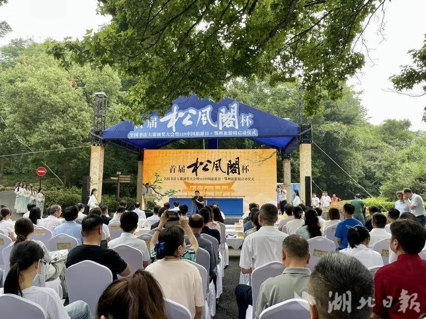 2024年5月19日,中國旅游日當(dāng)天,首屆“松風(fēng)閣”杯全國書法大賽頒獎(jiǎng)大會(huì)在鄂州市西山風(fēng)景區(qū)隆重舉辦,省、市領(lǐng)導(dǎo)為獲獎(jiǎng)代表頒獎(jiǎng)。與此同時(shí),現(xiàn)場邀請專家進(jìn)行了“跨越千年,對話黃庭堅(jiān)——黃庭堅(jiān)松風(fēng)閣書法的價(jià)值及對鄂州文化的塑造”對話。