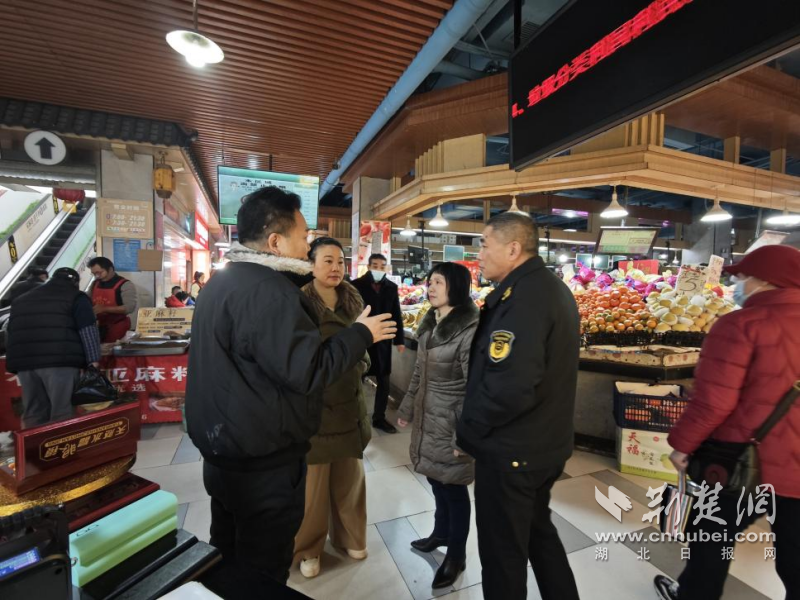 嚴(yán)密開(kāi)展農(nóng)貿(mào)市場(chǎng)“優(yōu)秩序保安全迎新年”專項(xiàng)督查行動(dòng),分管領(lǐng)導(dǎo)帶隊(duì)檢查了東湖景園市場(chǎng),重點(diǎn)檢查了市場(chǎng)內(nèi)外環(huán)境衛(wèi)生、長(zhǎng)江漢江魚(yú)禁售、計(jì)量電子秤、保供穩(wěn)價(jià)、消防安全等情況。
