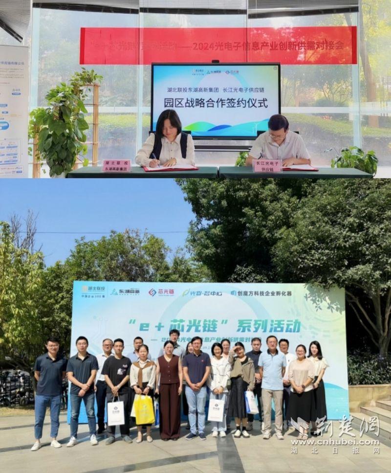 東湖高新集團(tuán)與湖北長江光電子簽訂園區(qū)戰(zhàn)略合作協(xié)議,并共同策劃出品“e+芯光鏈”活動(dòng)。通訊員供圖