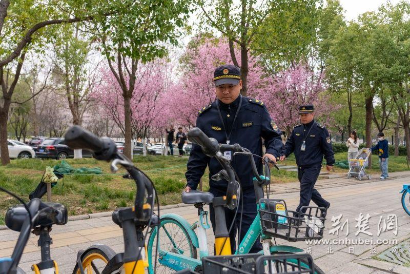城管部門在櫻園大門口、魯磨路植物園路路口和魯磨路設(shè)置了三個相對固定的值守崗位,安排專人執(zhí)勤守控,不定時進行流動巡查,勸離流動攤販、巡查共享單車等。